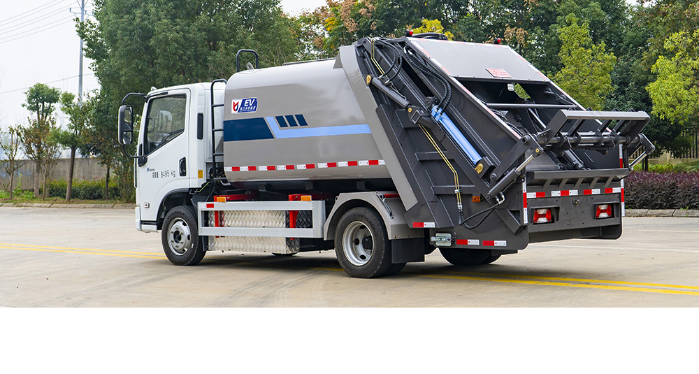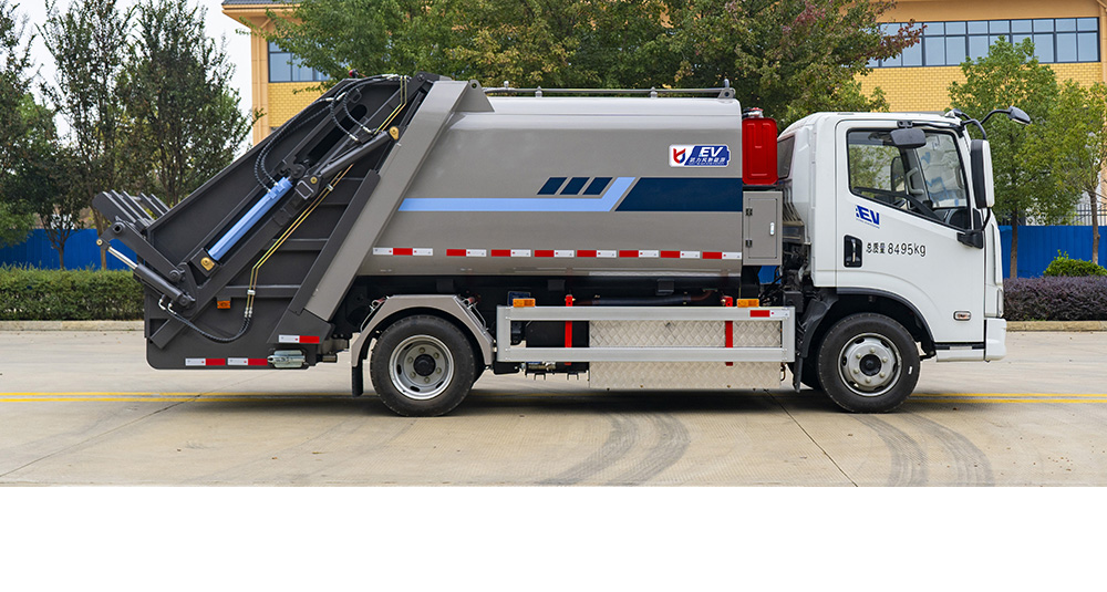 弧形箱體采用四軸卷板機滾弧一次成型,減少焊接面,增大容積率;優(yōu)化滑板角度及油缸受力點,壓縮比超市場競品20%。