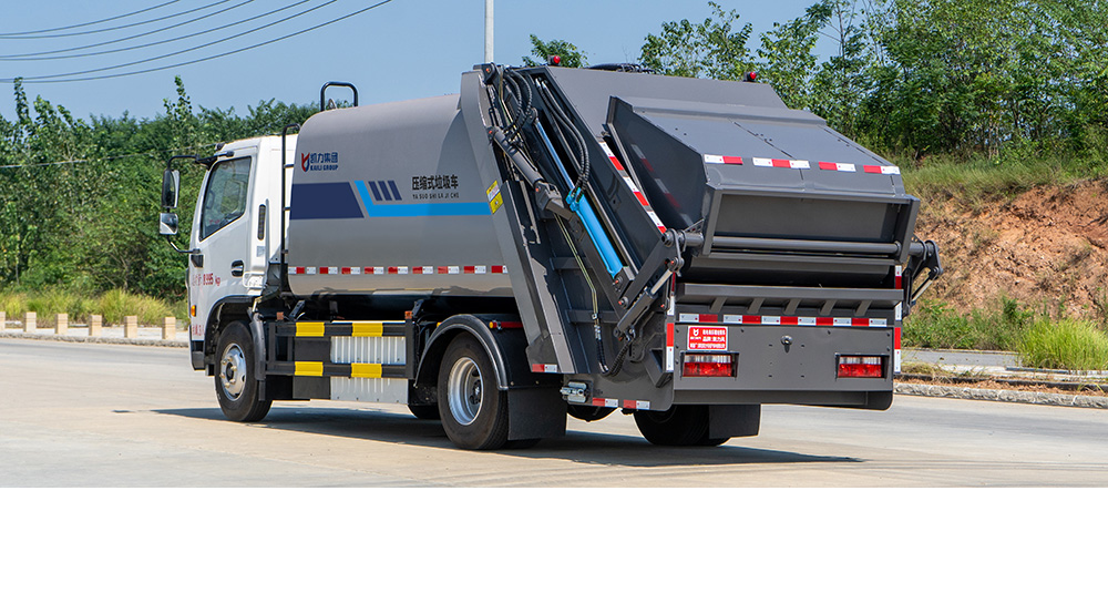 弧形箱體采用四軸卷板機(jī)滾弧一次成型,減少焊接面,增大容積率;優(yōu)化滑板角度及油缸受力點,壓縮比超市場競品20%。