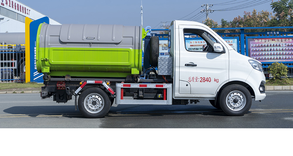 采用全封閉式垃圾箱,使其在裝車和運(yùn)輸過程中能有效地避免二次污染及噪聲污染,對于保護(hù)環(huán)境極為有利。