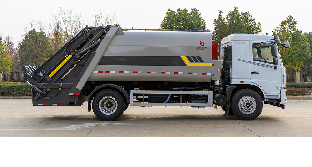 弧形箱體采用四軸卷板機(jī)滾弧一次成型,減少焊接面,增大容積率;優(yōu)化滑板角度及油缸受力點,壓縮比超市場競品20%。