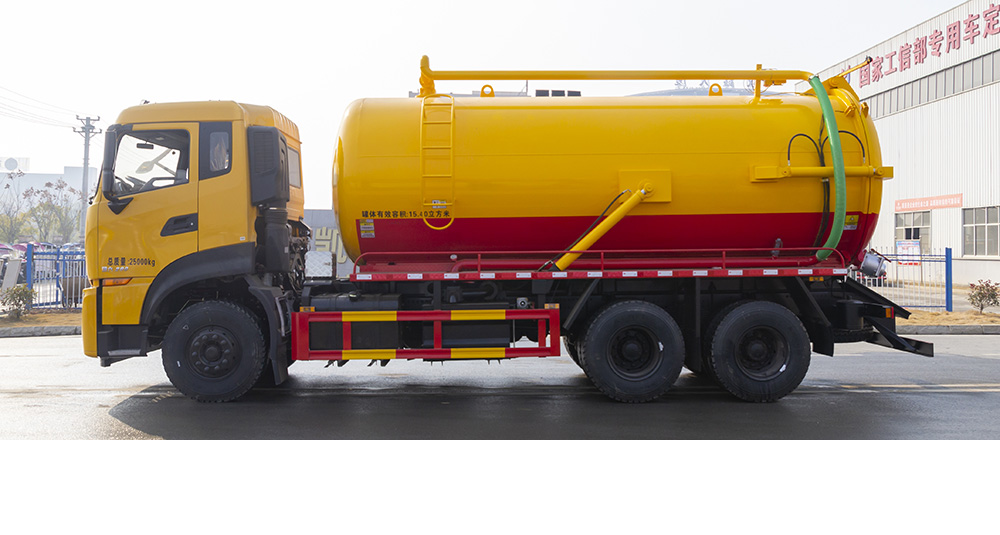 吸污車由汽車底盤、取力器、傳動軸、真空吸污泵、壓力罐體、液壓部分、管網(wǎng)系統(tǒng)、真空壓力表、視糞窗、洗手裝置等組成,隨車配置大功率真空吸污泵和優(yōu)質(zhì)液壓系統(tǒng),罐體封頭一次壓鑄成型、罐體可后開、雙頂自卸。