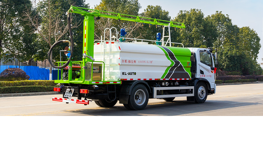該車輛結(jié)構(gòu)緊湊、布局合理、部件做工精細(xì)、產(chǎn)品配置完善、操作性能好,采用橢圓形或者方圓形結(jié)構(gòu)水罐,駕駛室和罐體中間有量管,使水罐內(nèi)的水量一目了然。罐體尾部有操作平臺(tái),平臺(tái)有安全防護(hù)欄保障操作人員安全,平臺(tái)上有爬梯方便操作人員上下車觀察罐內(nèi)情況。