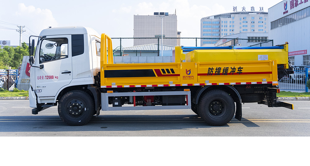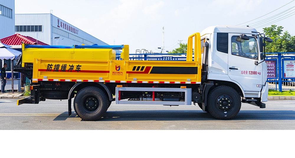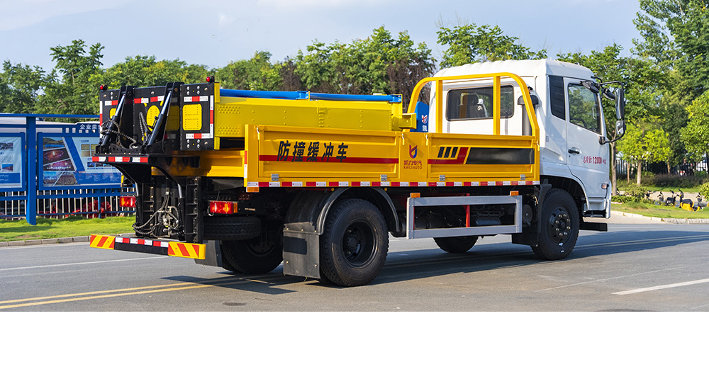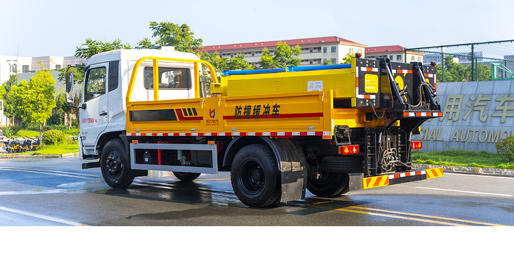防撞緩沖墊具有兩級(jí)吸能功效,金屬弧形彎管結(jié)構(gòu)在碰撞發(fā)生時(shí),弧形管先期吸收巨大的初始碰撞能量,當(dāng)碰撞能量造成弧形彎管變形后,充滿緩沖材料的結(jié)構(gòu)進(jìn)入變形吸能狀態(tài)。在碰撞過(guò)程中,防撞緩沖墊所有吸能材料和變形部件均被有效包裹在防撞緩沖墊內(nèi),不允許任何材料飛濺到其他相鄰車(chē)道。緩沖墊工作及行駛過(guò)程中均具備同步燈光系統(tǒng)(轉(zhuǎn)向燈、剎車(chē)燈、駐車(chē)燈,條形爆閃燈等)。