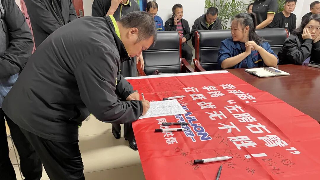 年度銷(xiāo)售目標(biāo)責(zé)任狀簽署儀式隆重舉行。各銷(xiāo)售中心業(yè)務(wù)負(fù)責(zé)人肩負(fù)重任、斗志昂揚(yáng),鄭重簽署新一年度軍令狀,彰顯出全力以赴、使命必達(dá)的堅(jiān)定信念。面對(duì)新征程,全體銷(xiāo)售團(tuán)隊(duì)將以決戰(zhàn)決勝的姿態(tài)開(kāi)拓進(jìn)取,奮力攀登業(yè)績(jī)新高峰。