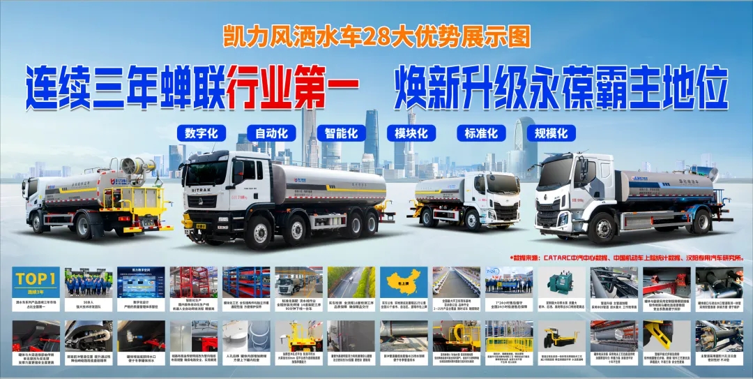 凱力風(fēng)東風(fēng)D9灑水車是湖北凱力專用汽車有限公司自主研發(fā)設(shè)計的第4代環(huán)衛(wèi)裝備,性能達世界領(lǐng)先水平,年產(chǎn)銷超10000臺。標配前沖、后灑、側(cè)噴等,還可選裝高壓水炮、消防接口等,適用于多種場景,具有多種功能。凱力風(fēng)灑水車已連續(xù)三年榮膺全國銷量第一名。