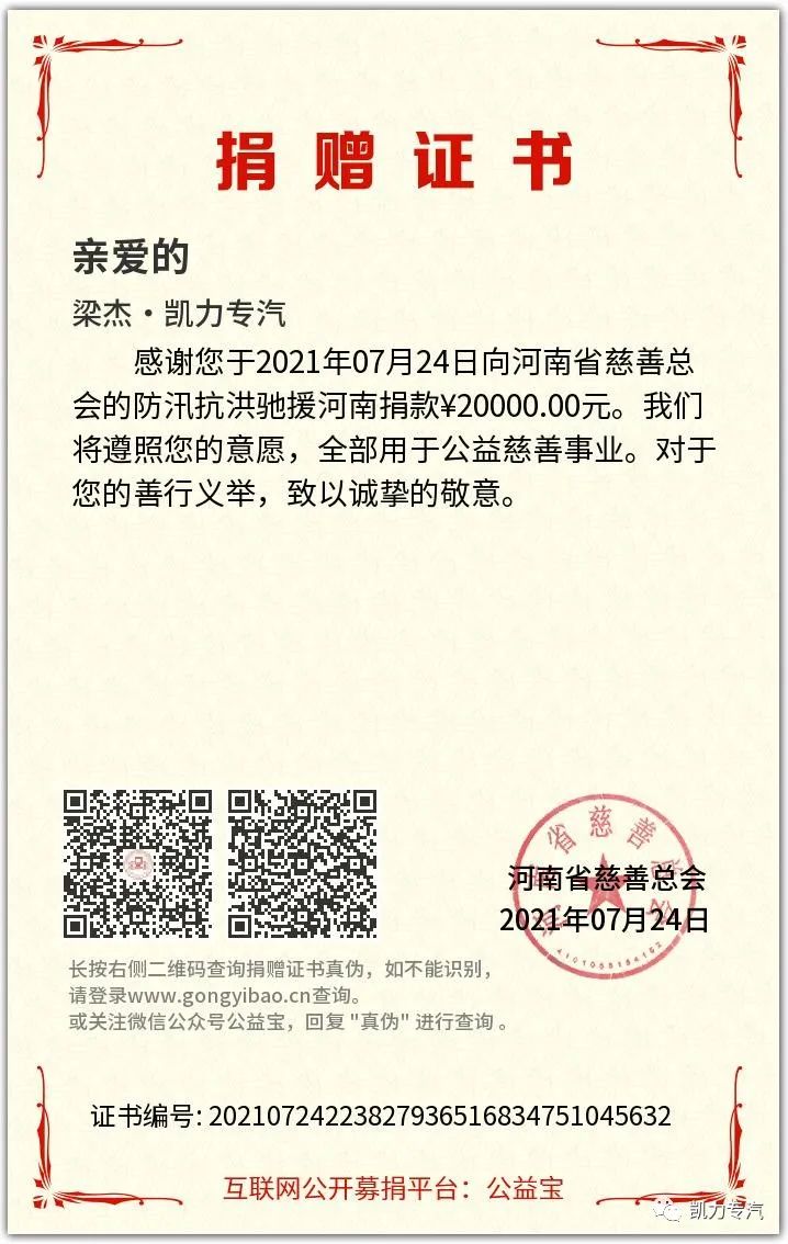【凱力公益】風“豫”相“隨” 共筑家園 ——凱力專汽捐款捐物馳援河南新鄉(xiāng)
