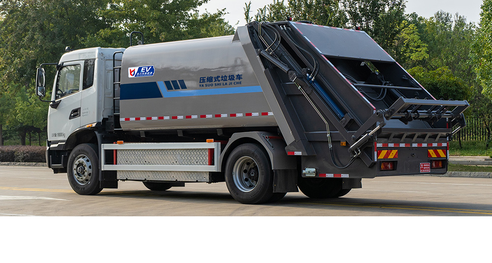 弧形箱體采用四軸卷板機(jī)滾弧一次成型,減少焊接面,增大容積率;優(yōu)化滑板角度及油缸受力點,壓縮比超市場競品20%。
