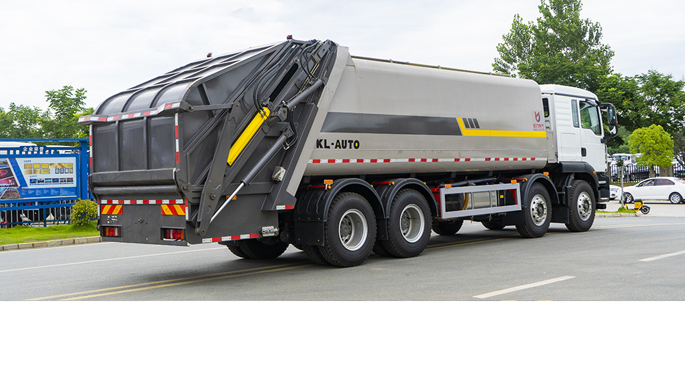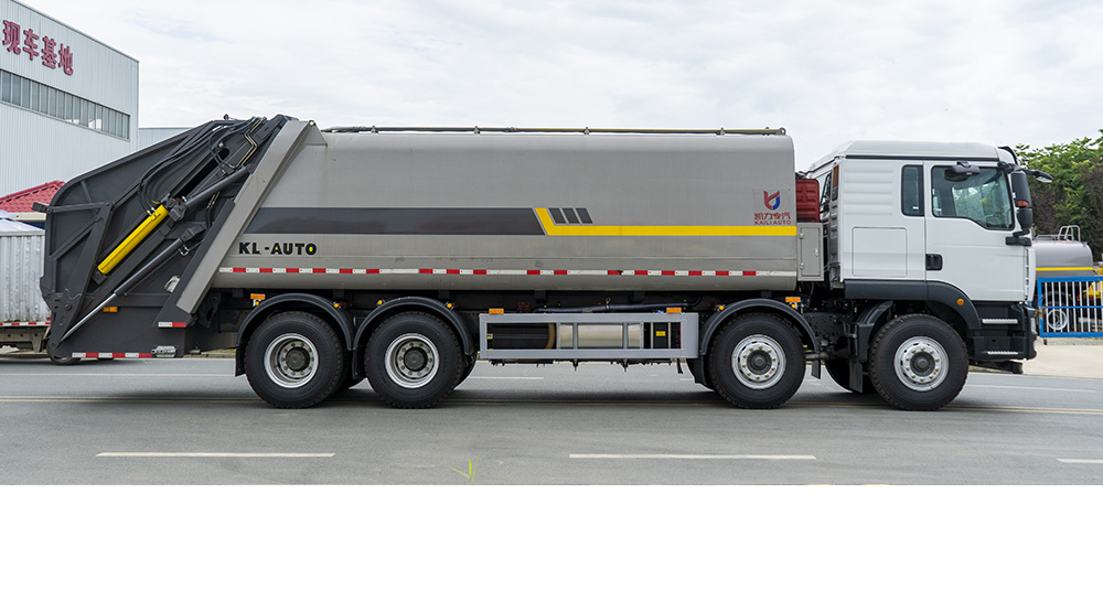 弧形箱體采用四軸卷板機(jī)滾弧一次成型,減少焊接面,增大容積率;優(yōu)化滑板角度及油缸受力點(diǎn),壓縮比超市場競品20%。