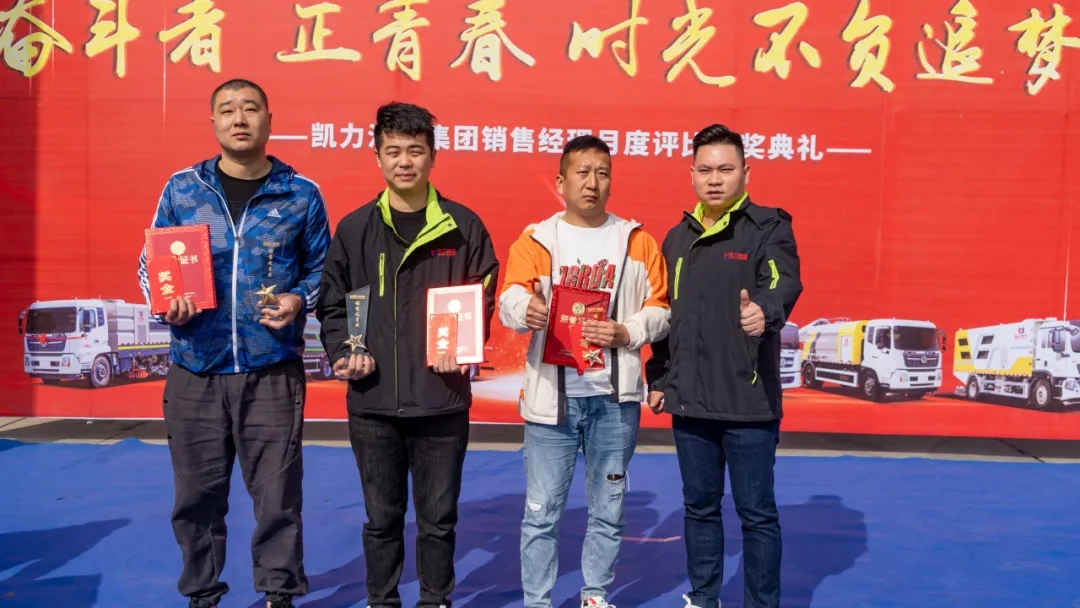● 凱力汽車集團(tuán)銷售經(jīng)理月度評比頒獎典禮盛大舉行。集團(tuán)董事長梁杰對大家的工作成果給予肯定,為銷售精英們頒發(fā)榮譽證書及現(xiàn)金獎勵,希望全體營銷人員再接再厲進(jìn)一步拓展市場,形成一個愛崗敬業(yè)、學(xué)優(yōu)爭先的工作氛圍,共同為公司2023年度發(fā)展目標(biāo)開創(chuàng)新的局面。