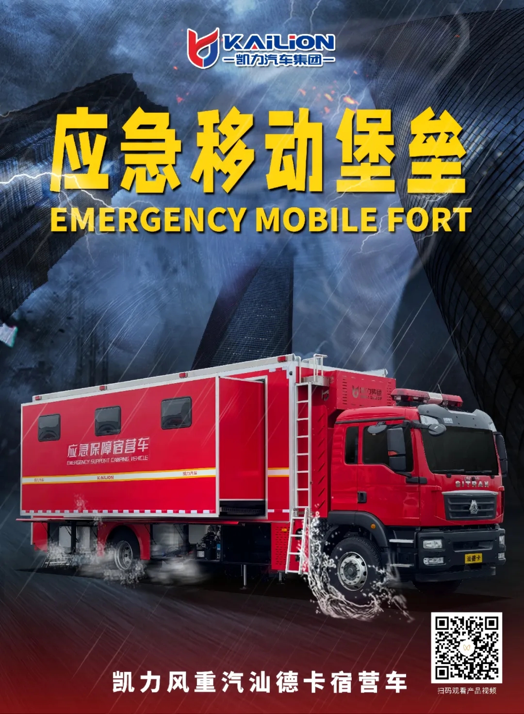 凱力風牌重汽汕德卡應急保障宿營車,是一款集機動性、生活保障與應急功能于一體的大型野外“移動營地”,具有強動力、高通過性、極致舒適與高安全性等特點。